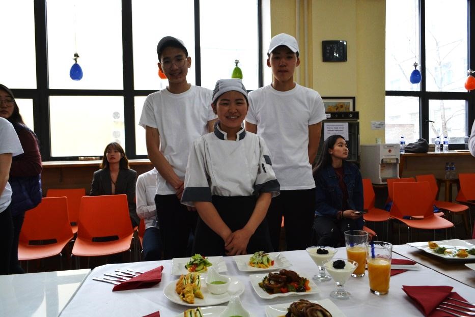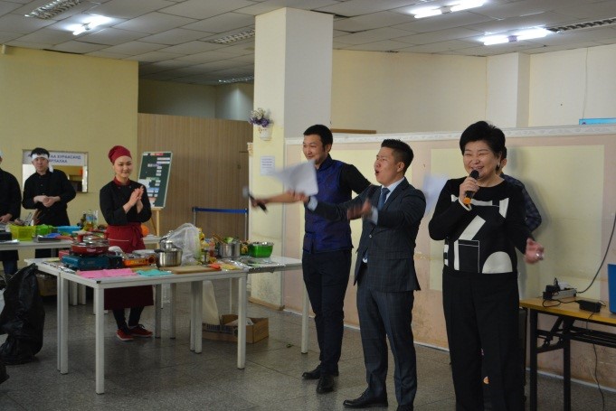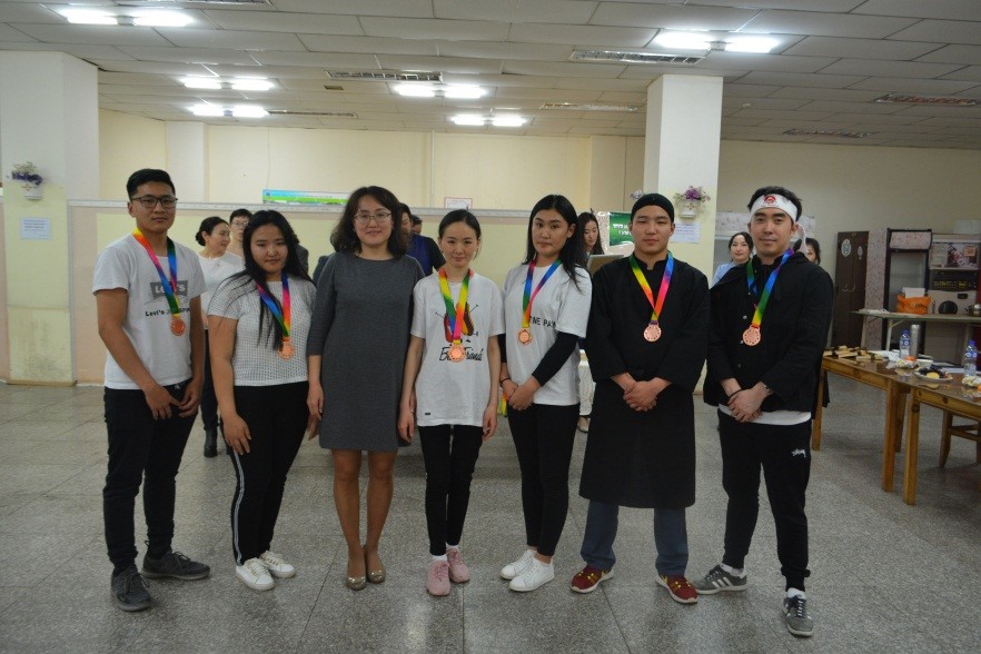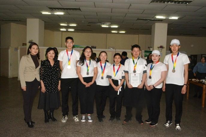 Шилдэг бүтээлийн эзэд болох ХҮҮТ-4 ангийн Т.Энхзул, Э.Оюунсувд, ХҮҮТ-3 ангийн М.Мөнгөнболор нарт Номадс Сүлжээ Зоогийн Газар өөрсдийн хэвлэсэн Уламжлалт ба орчин цагийн Монгол хоолны 99 жор номоороо шагнаж дурсгал болгов.